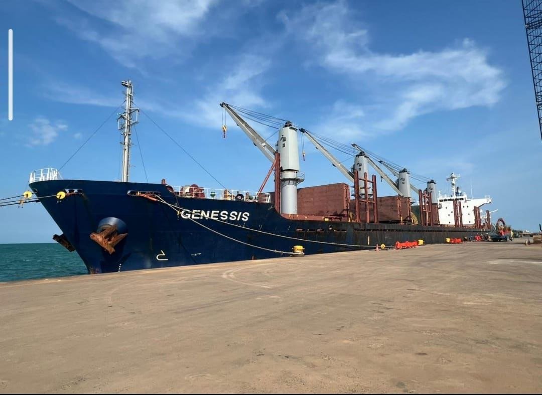Kapal MV GENESSIS membawa komoditas kargo curah (bulk cargo) yang akan diproses menggunakan fasilitas crane kapal dan peralatan penunjang pelabuhan. Seluruh kegiatan dilaksanakan dengan standar keselamatan tinggi serta koordinasi langsung antara tim pelabuhan, agen kapal, dan pihak terkait lainnya.